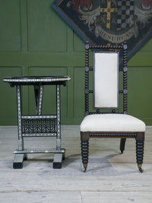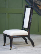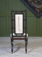 The graduated bobbin turned front legs raised on quality gilt brass castors, splayed rear legs supporting the tall backrest.