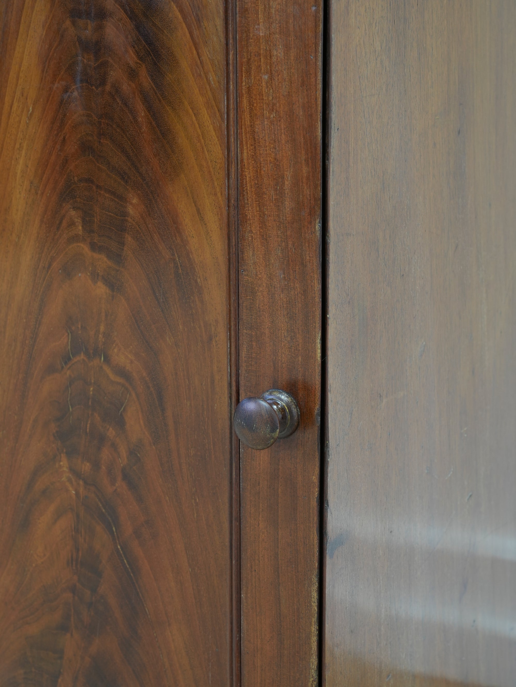 The door centred by flame mahogany with a single central shelf behind.