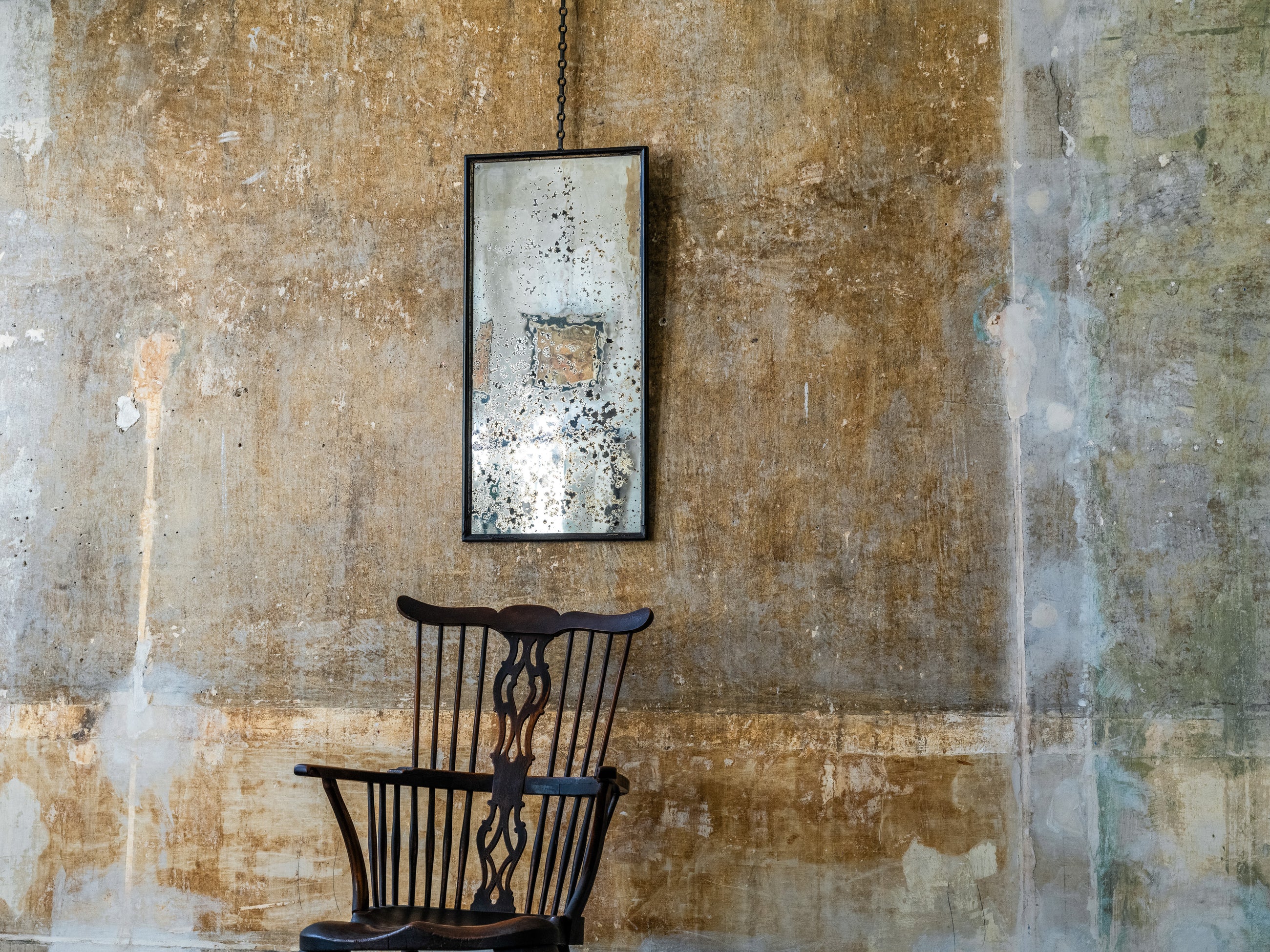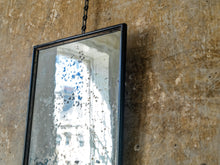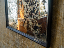 A rectangular wall mirror in a narrow ebonised timber frame.