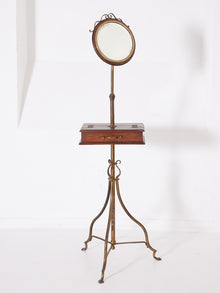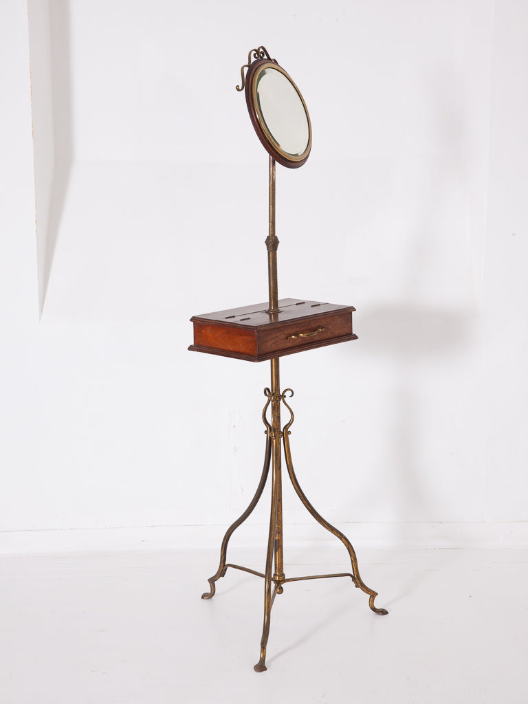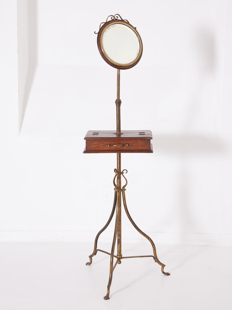 A gilt brass and oak dressing room mirror.
