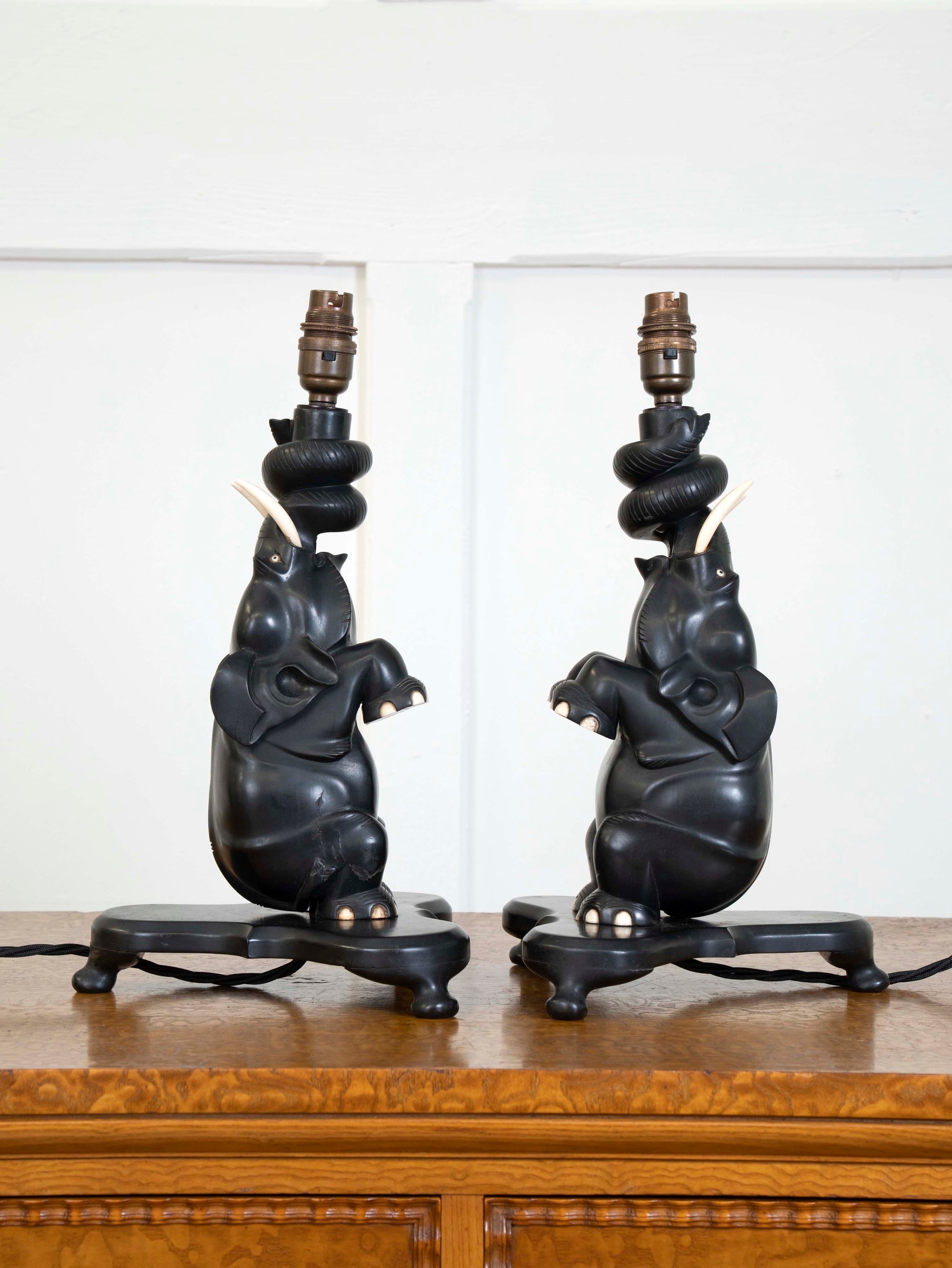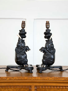 A Pair of Ebony Ceylonese Elephant Table Lights