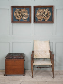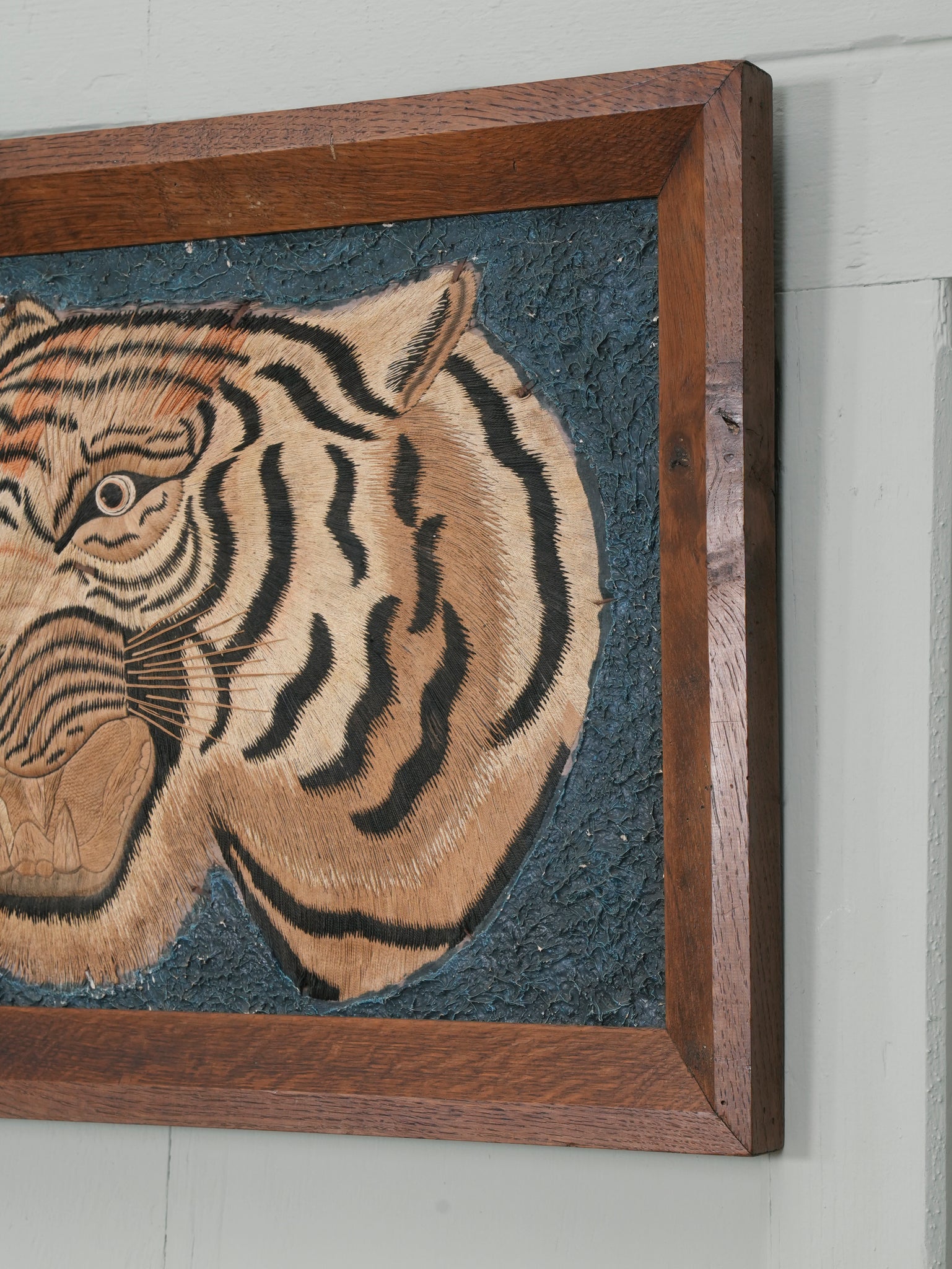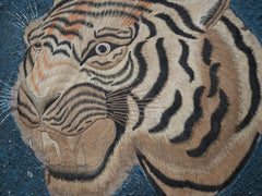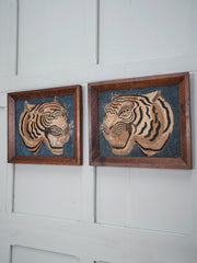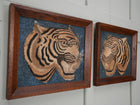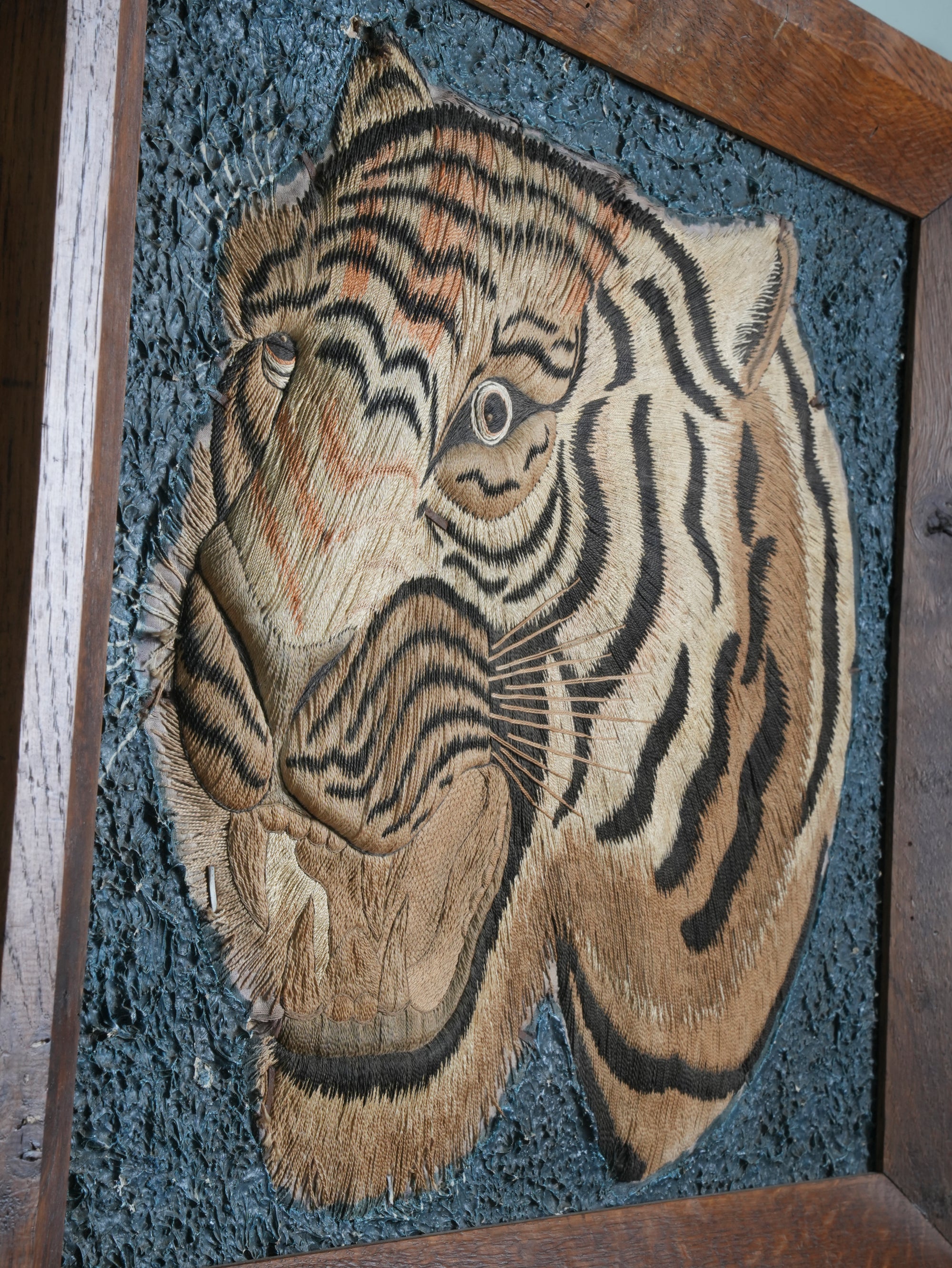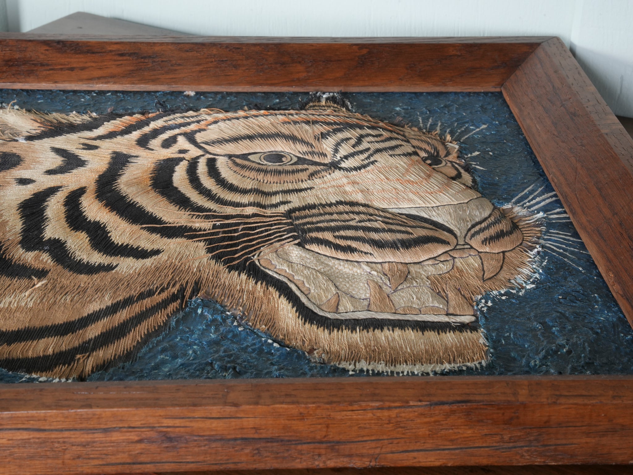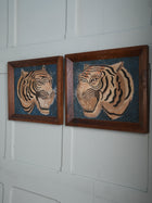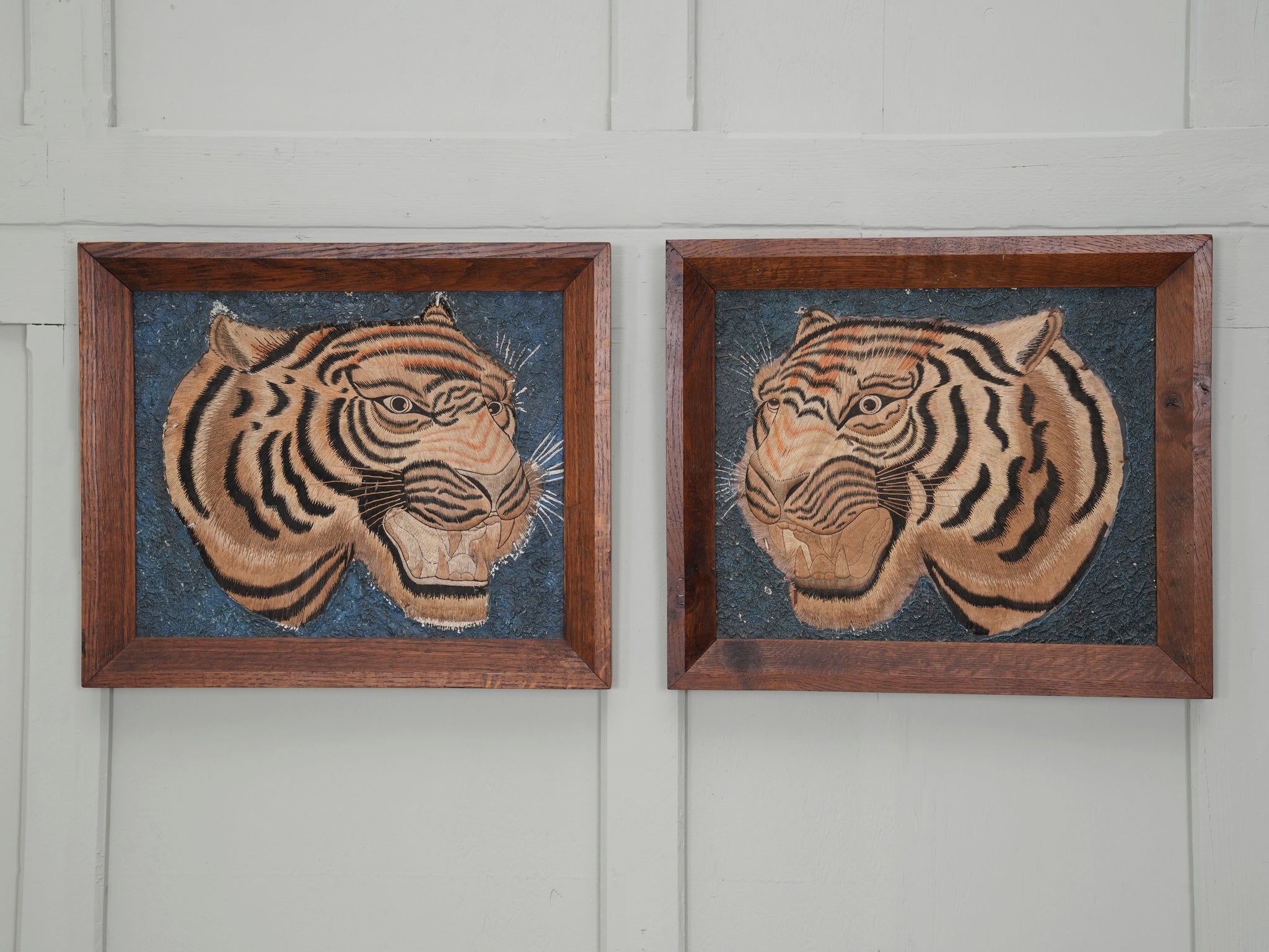 A Pair of Framed Silk Embroideries of Tigers Heads
