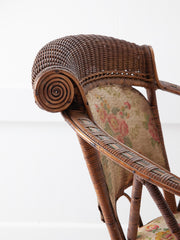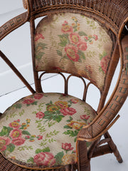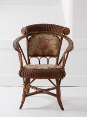 Canework and wicker open upholstered armchair.