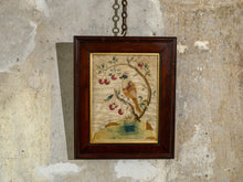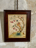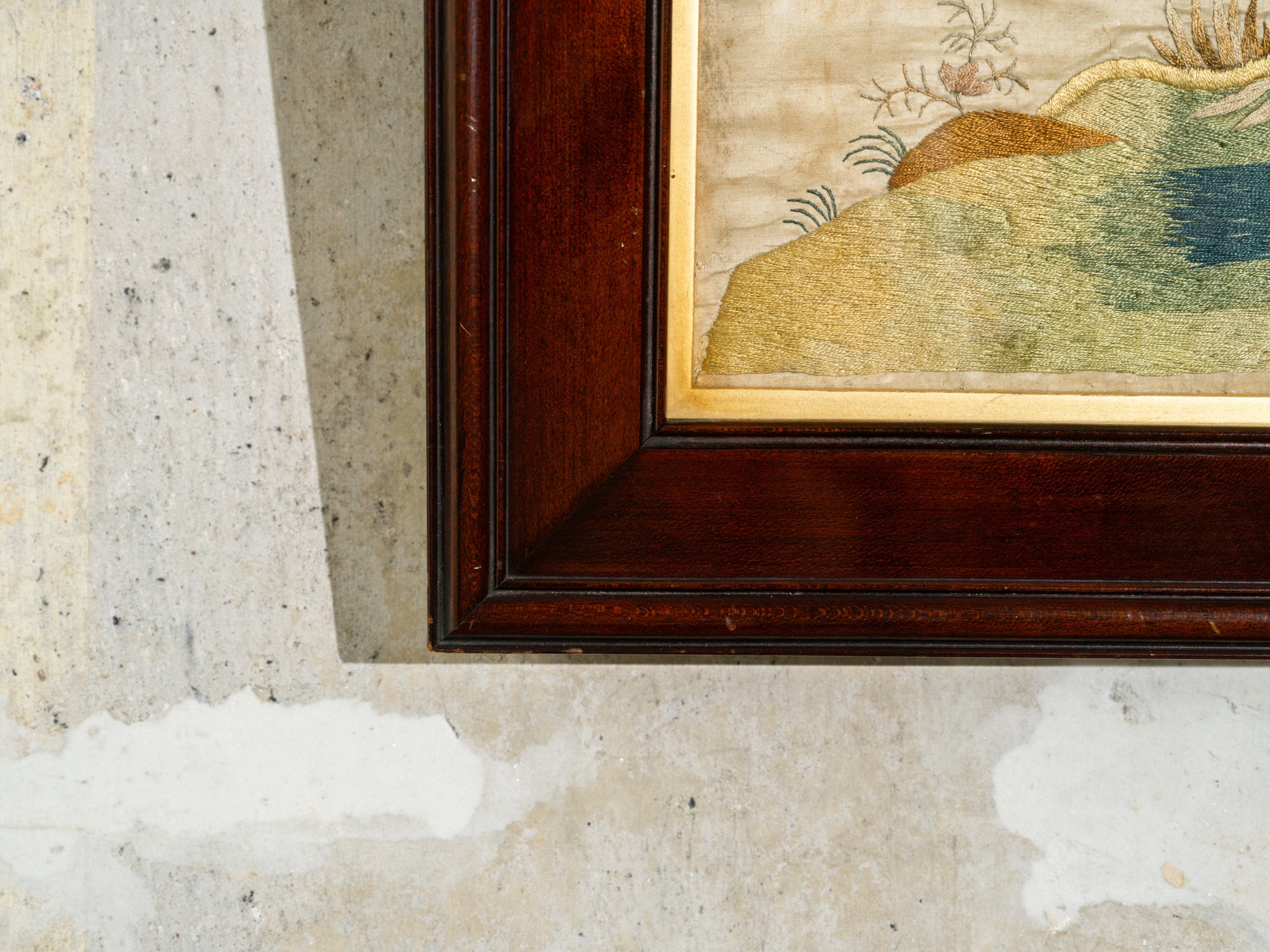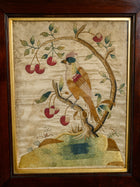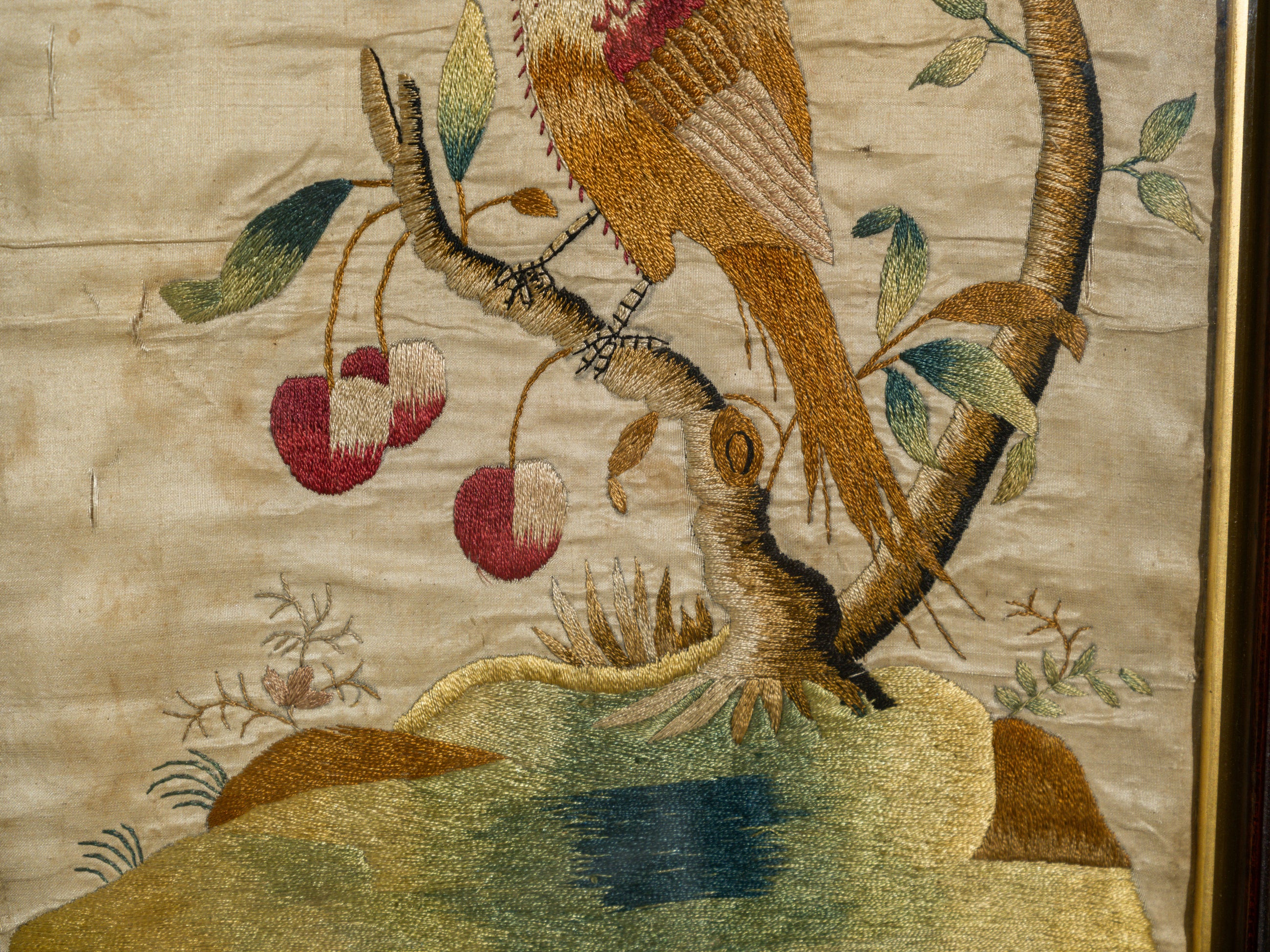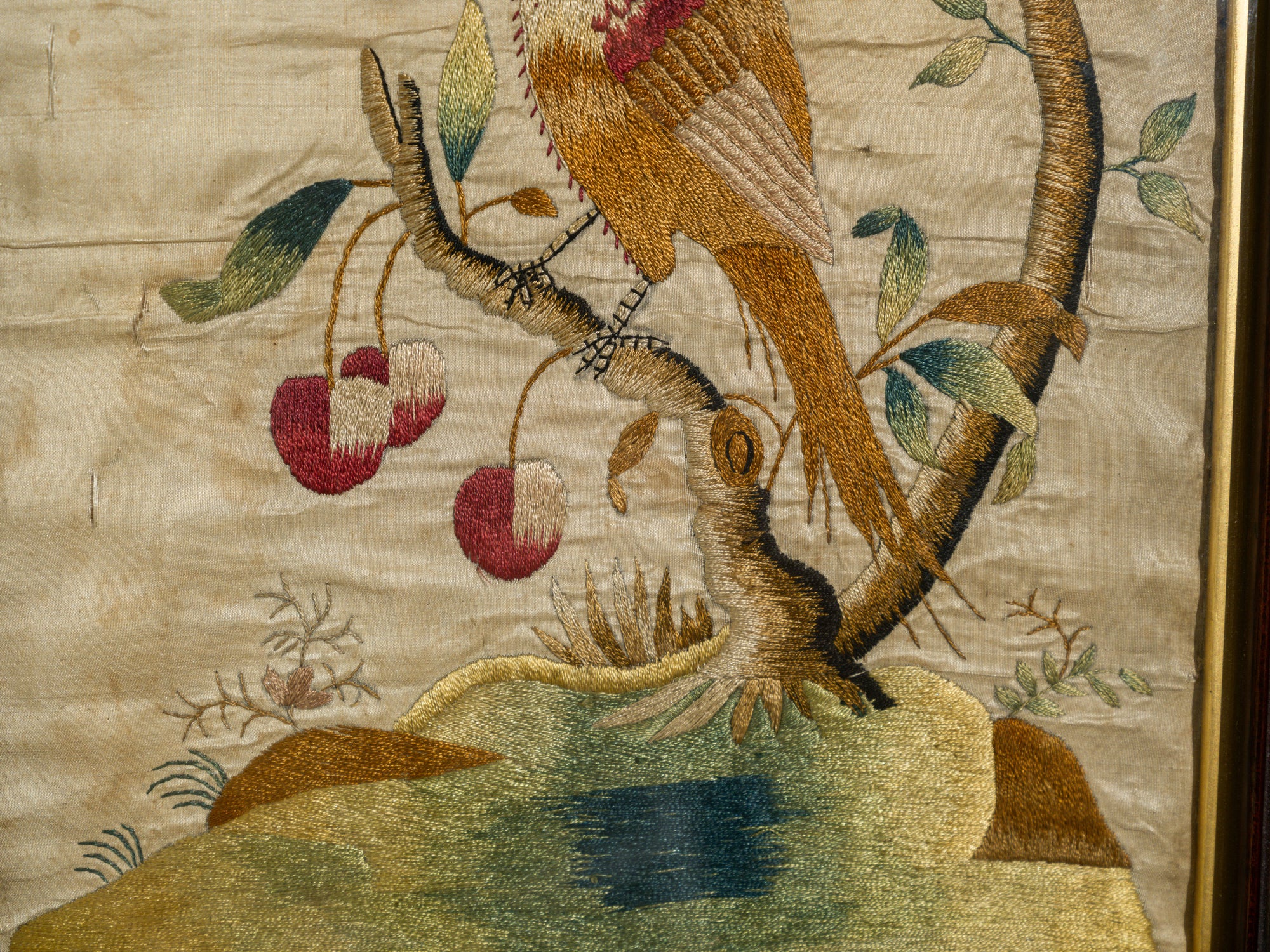 The diminutive silkwork is incredibly striking, usually faded this remarkable survivor is vibrant with minimal damage to the silk ground with only minor foxing or tears, framed in the 19th century with gallery paper label verso.