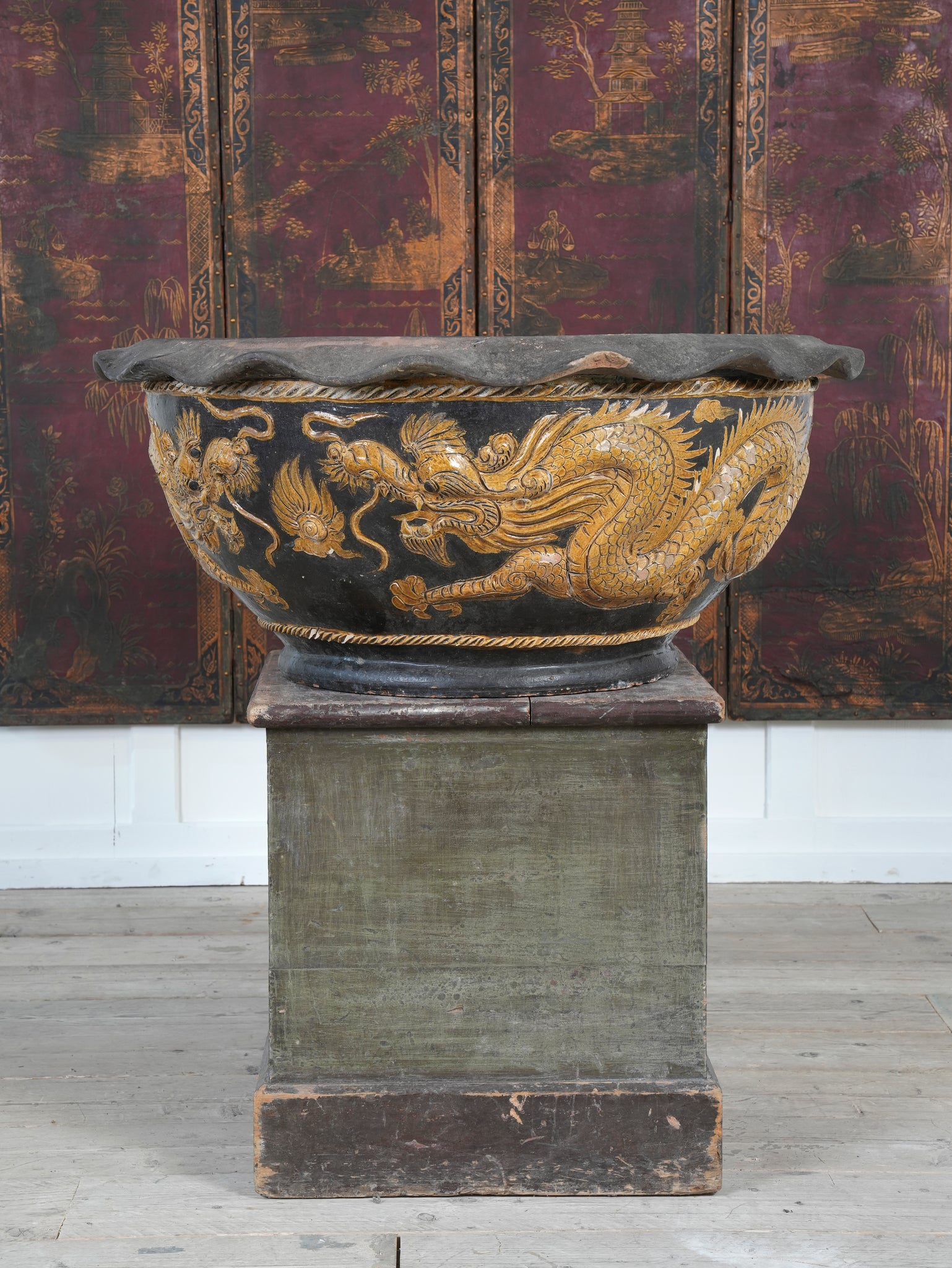 The large tazza form bowl decorated with a traditional oriental dragon motif running around the body.