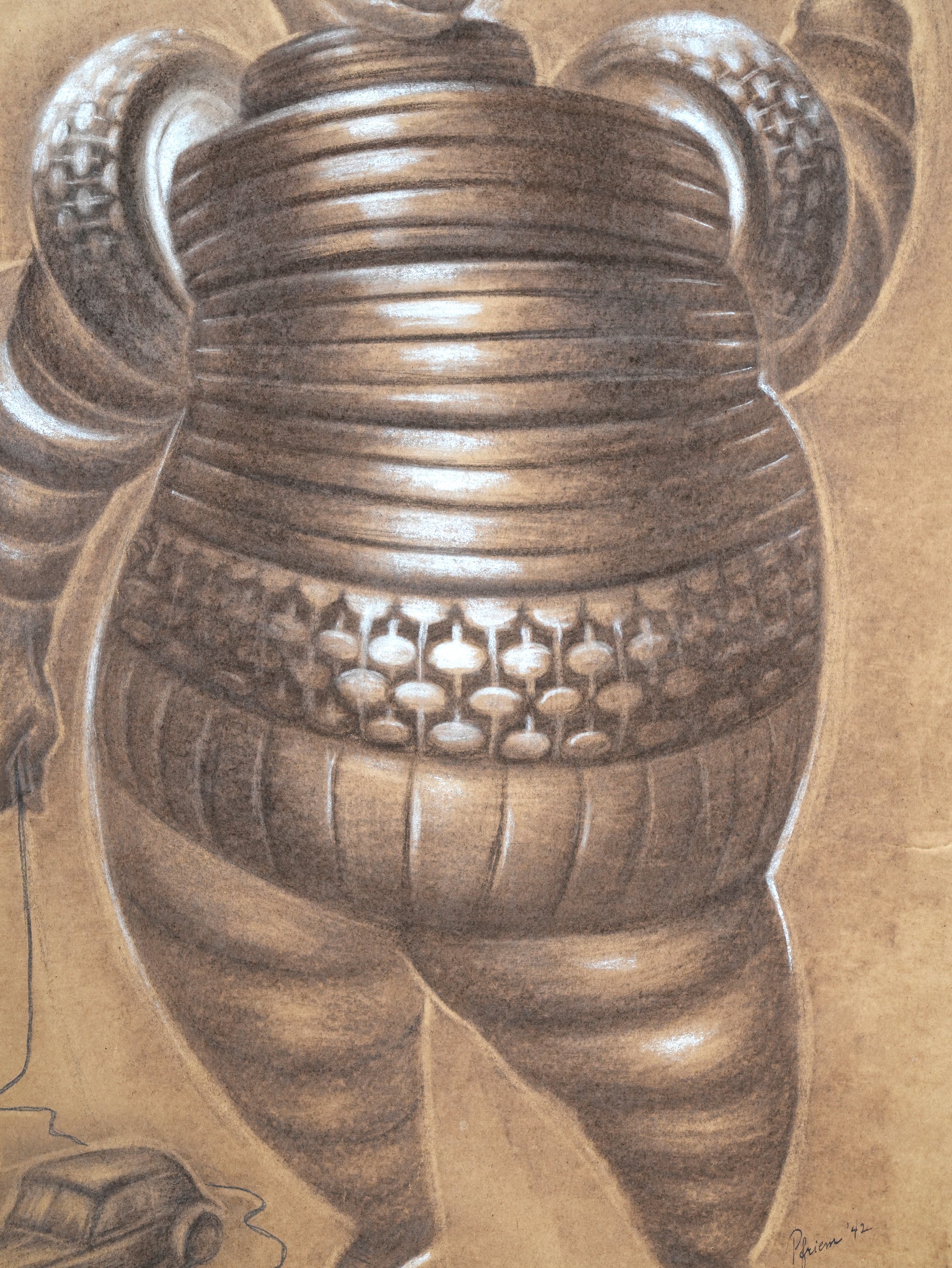 BERNARD PFRIEM (AMERICAN 1916 - 1996). White and black chalks on paper.