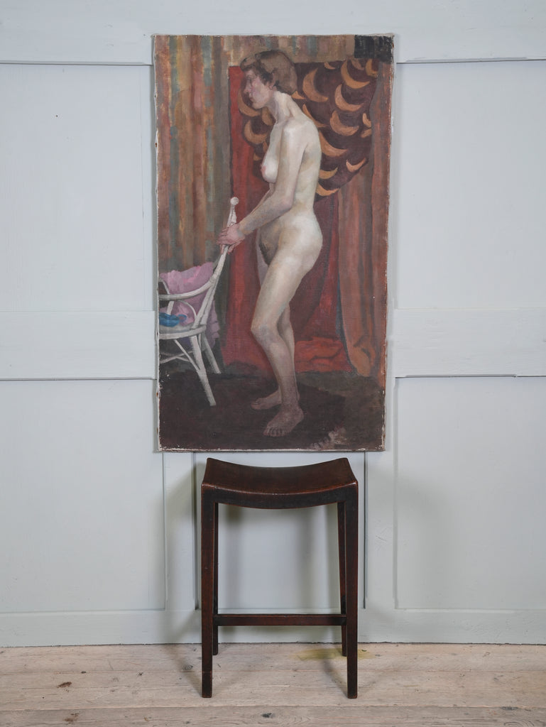 An enigmatic yet striking standing female nude in the oeuvre of the Bloomsbury group.