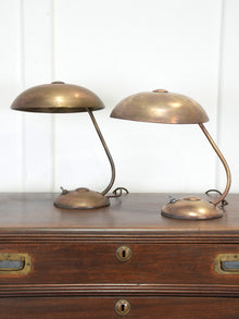 A pair of patinated brass modernist desk lights by Help Leuchten.