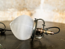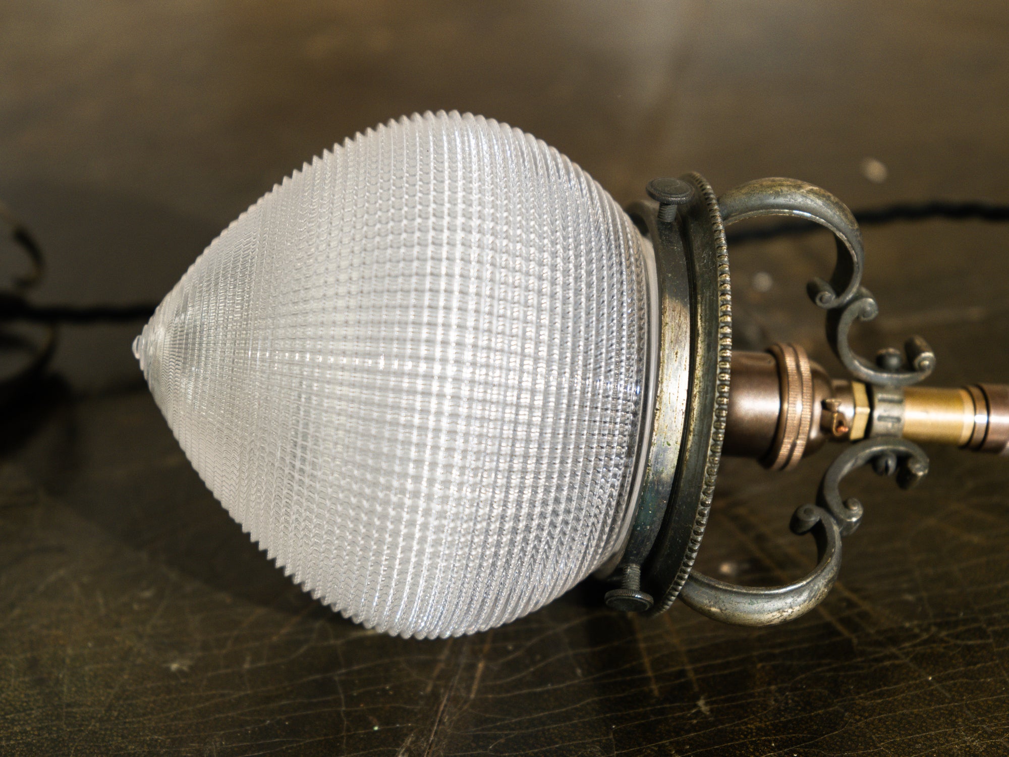 Restored and rewired with three core fabric covered cable and fitted with patinated B22 bulb holder.