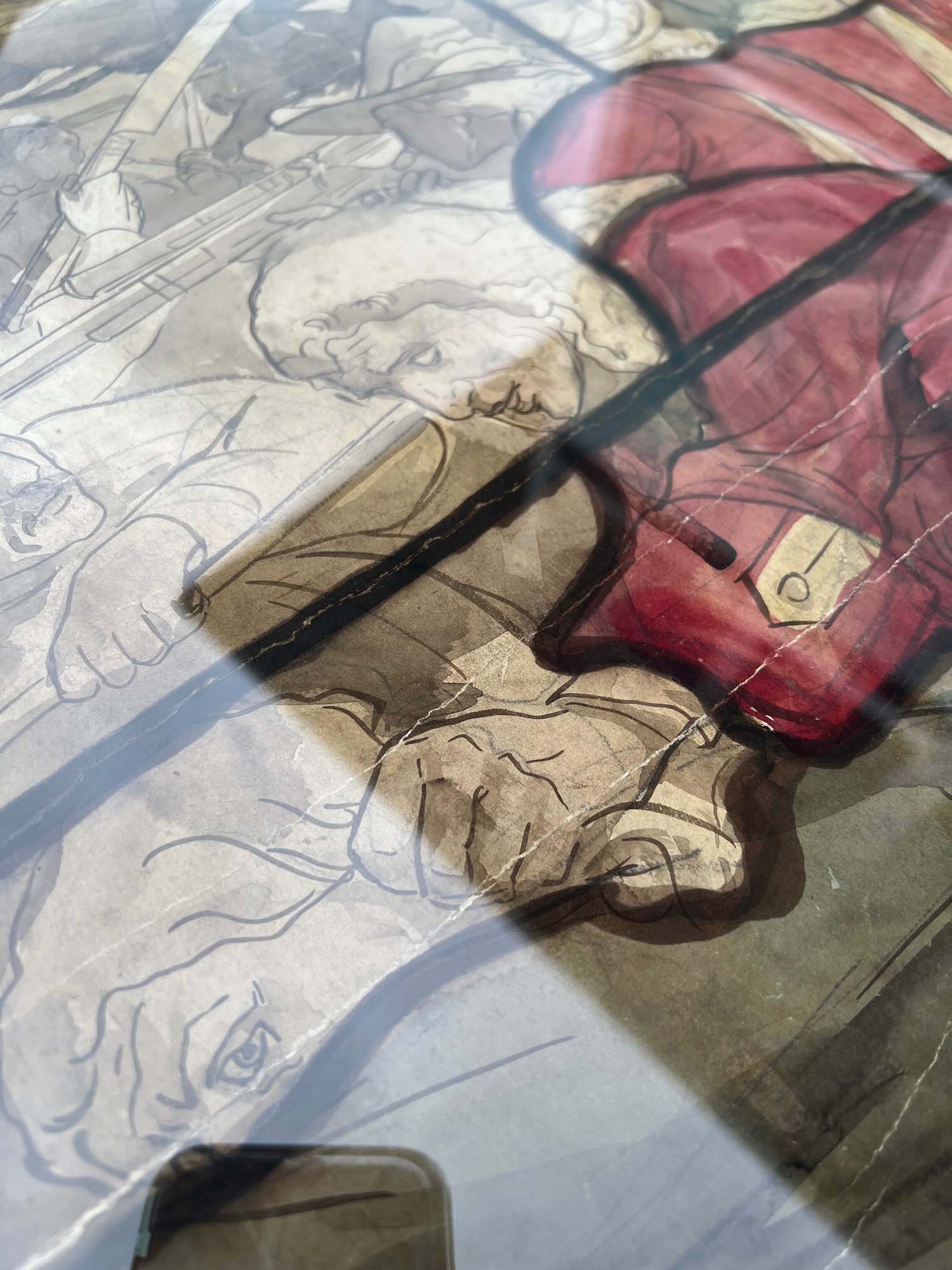 Each battle scene showing the potential final glass colour choices and the lead lines.